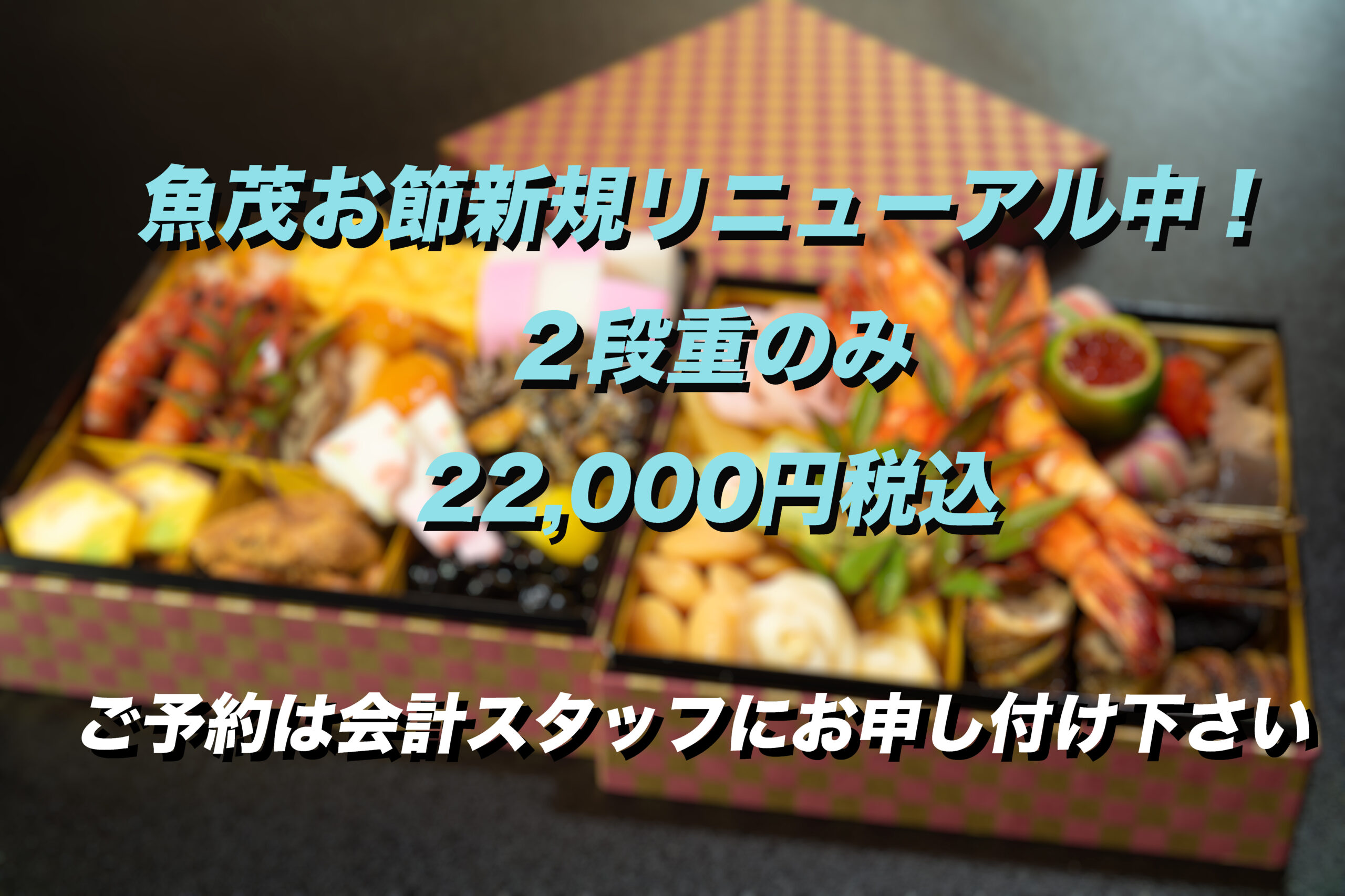 今年の魚茂のお節料理は2段重22,000円のみとなります。